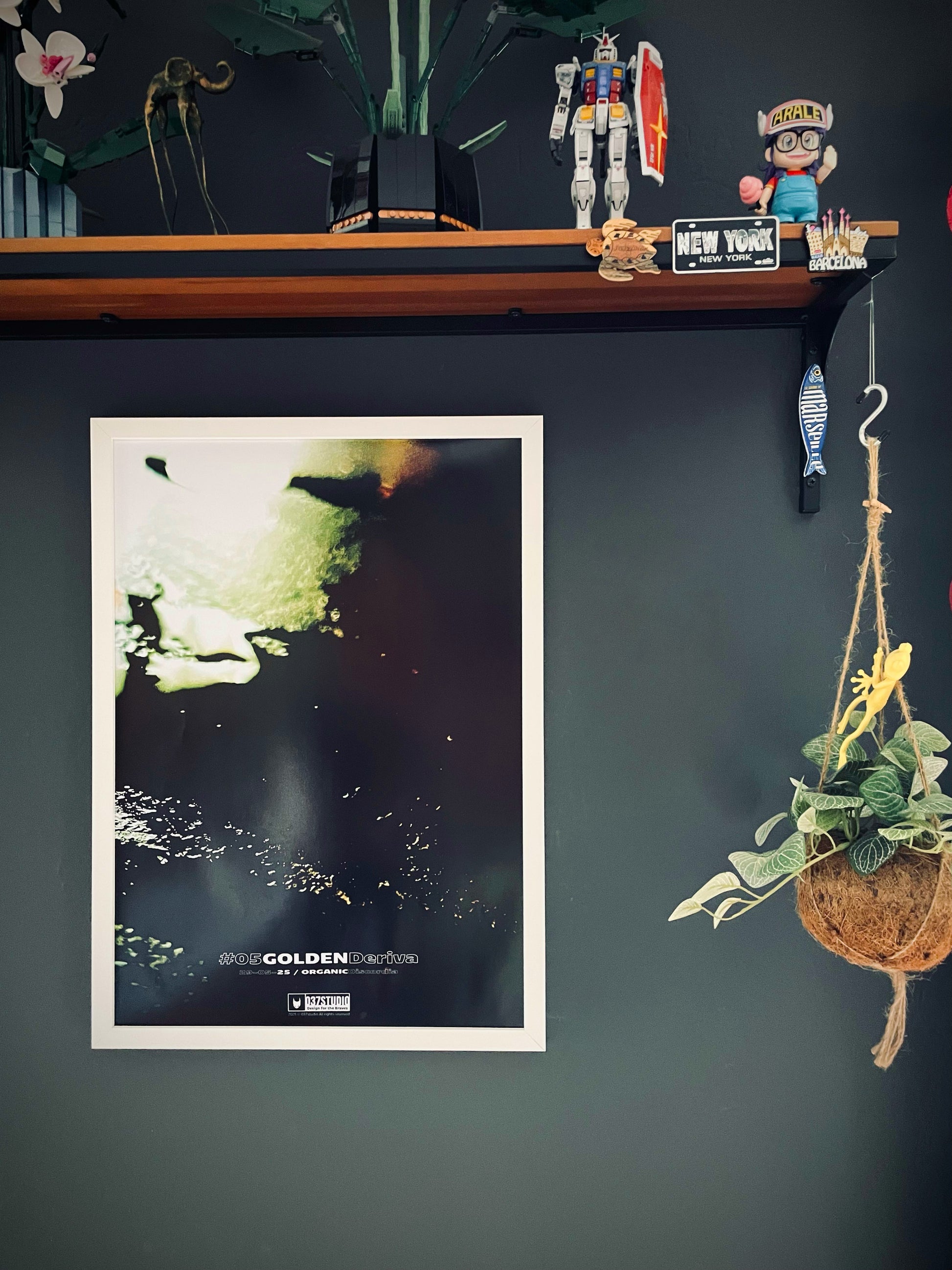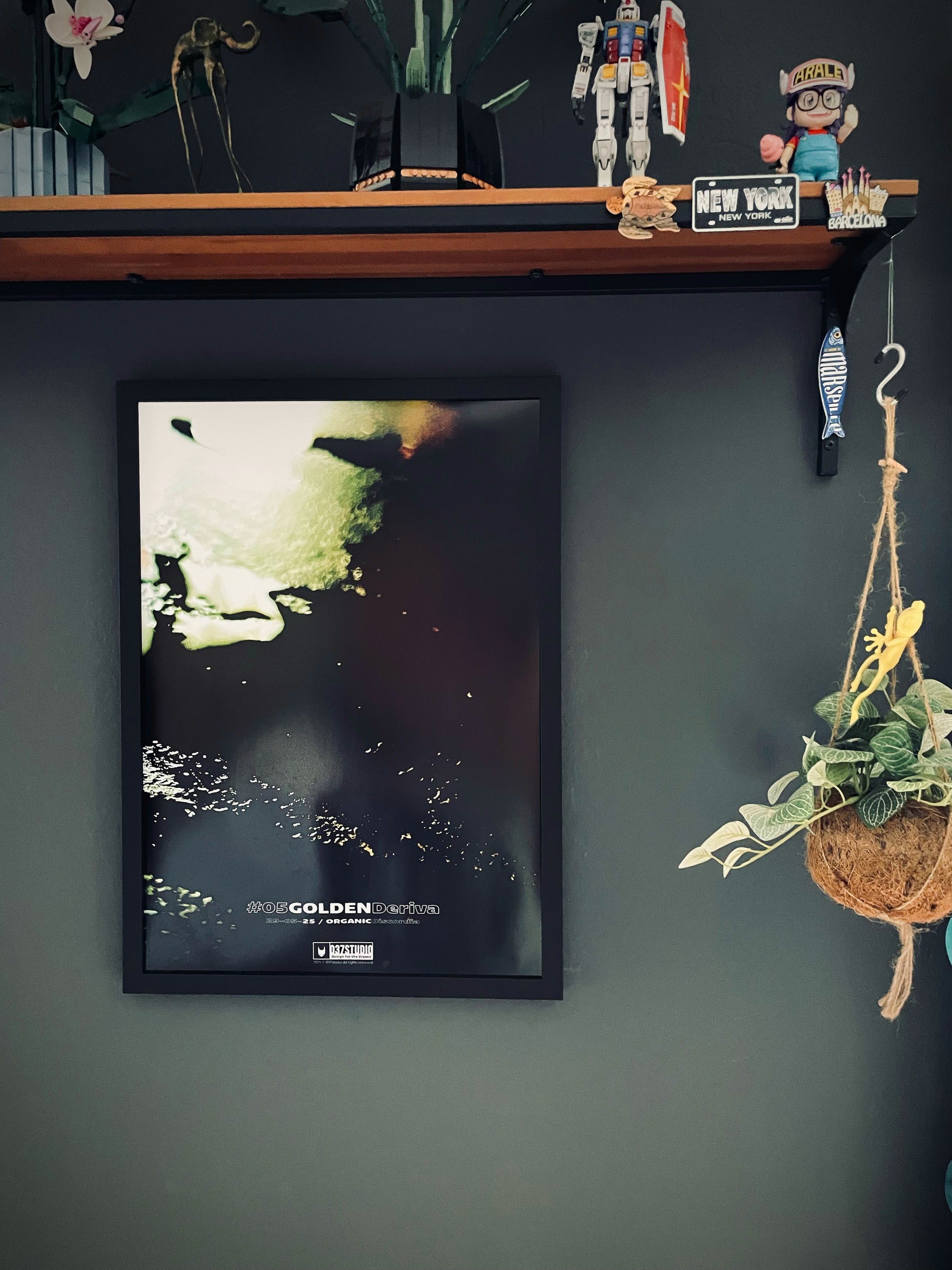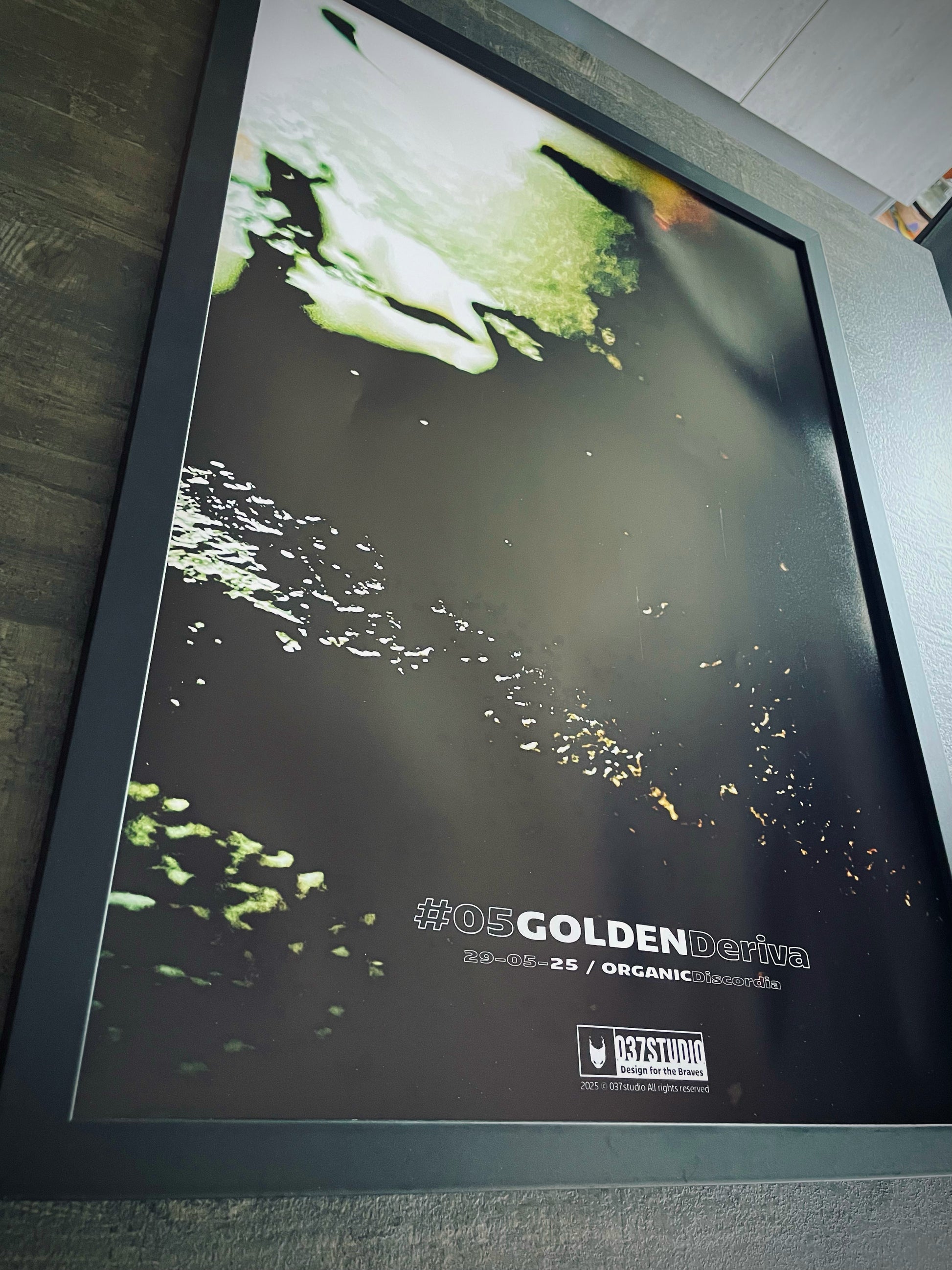 Realizzata fotografando una superficie intrisa d’acqua scura e putrida, segnata da riflessi irregolari che lasciano emergere bagliori quasi dorati. La materia sembra respirare lentamente, oscillando tra attrazione e repulsione, come un movimento sospeso.